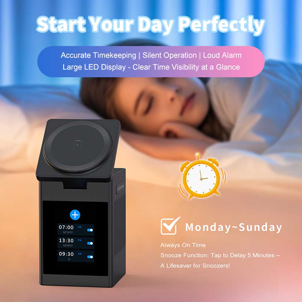 • 🕒 العرض الذكية على مدار الساعة – الميزات الرقمية أدى العرض على مدار الساعة مع التاريخ و الوقت مضاعفة السرير إنذار أو رفيق سطح المكتب.