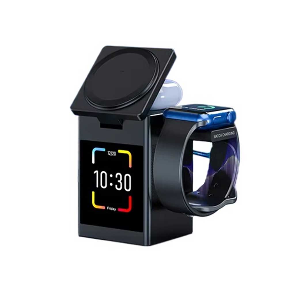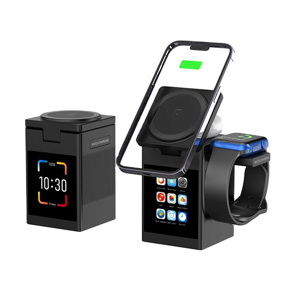 3-في-1 المحمولة اللاسلكية المتكلم مع اي فون ، AirPods & iWatch شاحن | Smart Charging Dock Station